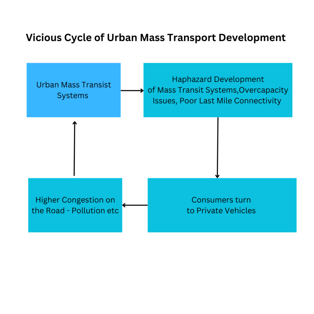 This haphazard form of urban transit systems causes increased demand for private vehicles which creates more congestion and the vicious cycle, sought to be broken by mass urban transit systems, continues to only grow stronger. This in turns causes fatigue, irritability, respiratory issues, loss of focus and overall discomfort for those enduring the commute to office.
