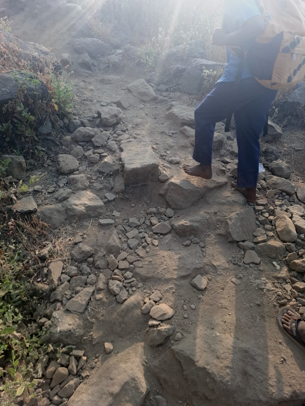 I learnt from them that they stayed in the ashram school in a village about 7 km away. And every weekend, they took a back route from their school to trudge up the hill to their home on Prabalamachi, where their parents lived. S was 12 and R was 8. At one of the turns, S stopped and gave R his slippers. That’s when I realised that they shared the only pair between them. They walked barefoot without flinching.