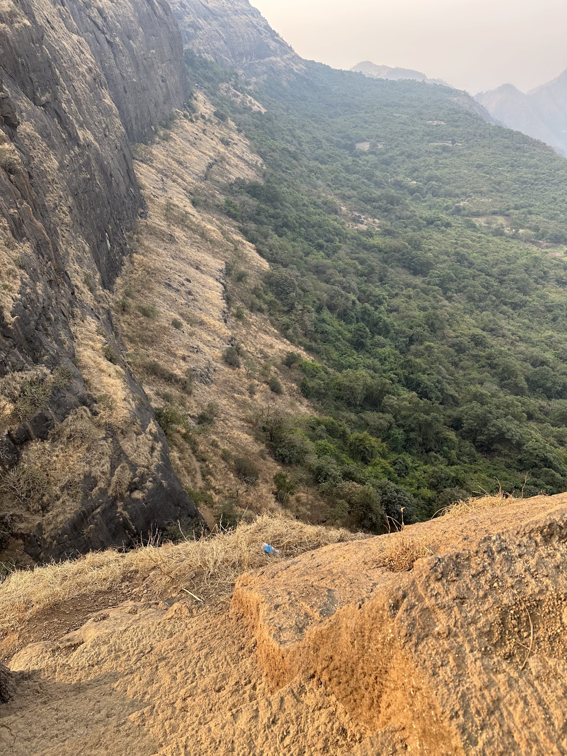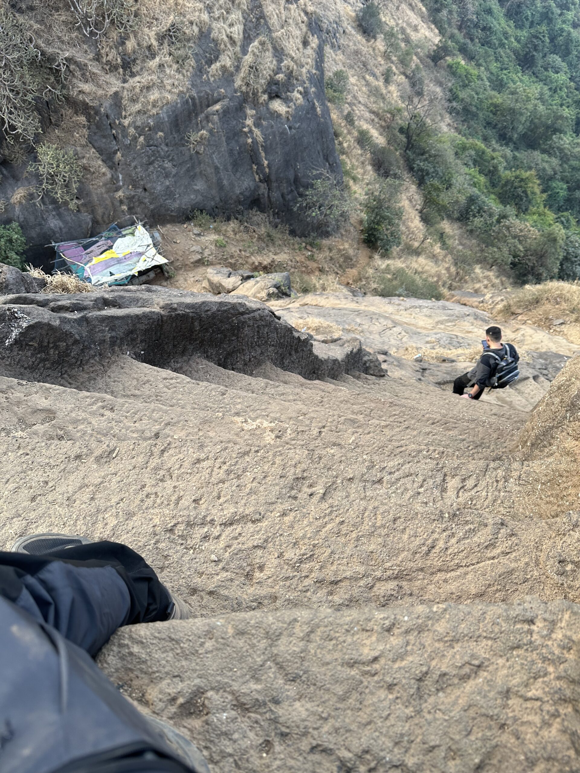 After a few minutes, I found myself at the base of the rock-cut steps. The infamous ones with a sharp exposure to the valley. These steps apparently made Kalavantin one of the most dangerous hikes in India. Self-doubt had started to creep in. The impostor was crying out loud now.