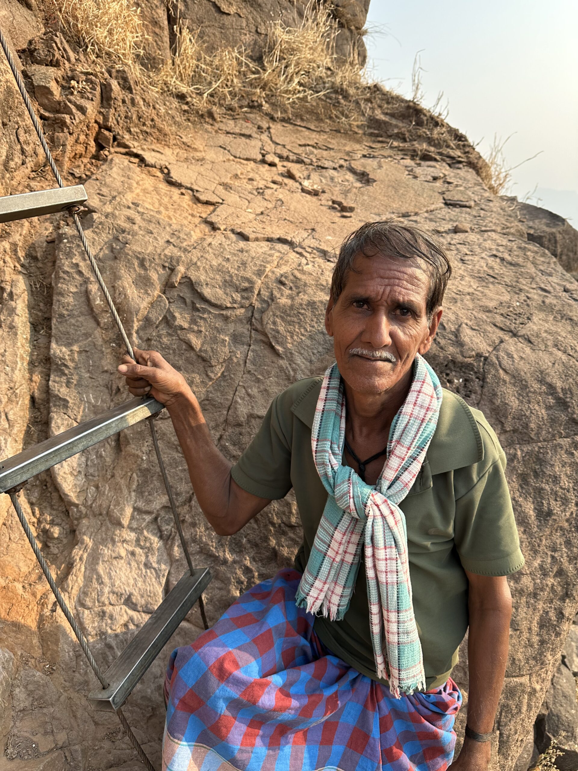At his house, his daughter told me that he was “on duty” at Kalavantin peak and I could meet him there. Turns out that the final ascent of Kalavantindurg had become trickier over the years and the local youth had installed a rope and a ladder to navigate that patch. For a small fee, you could use those to climb up. Rama Kaka was in that detail that morning.