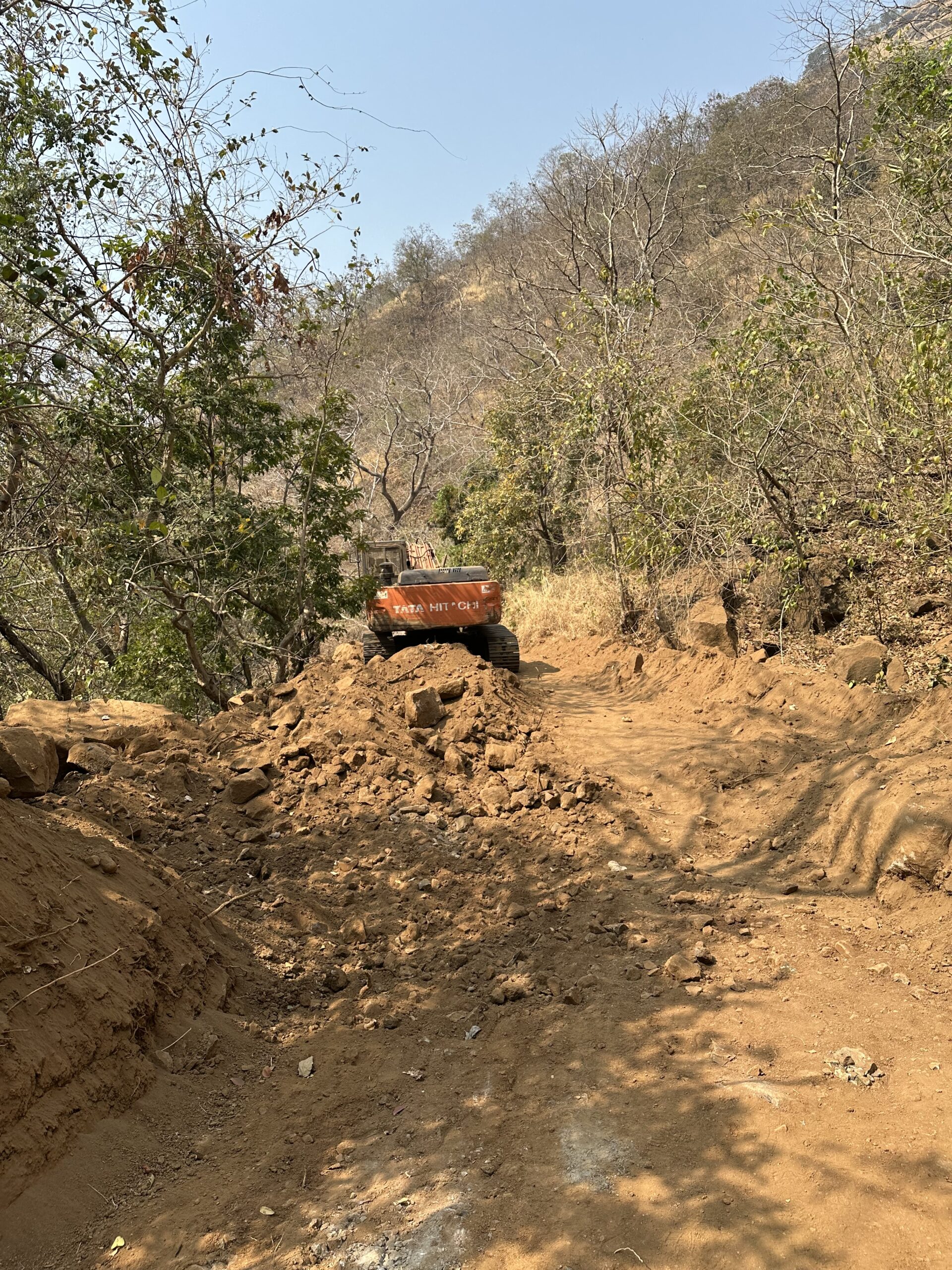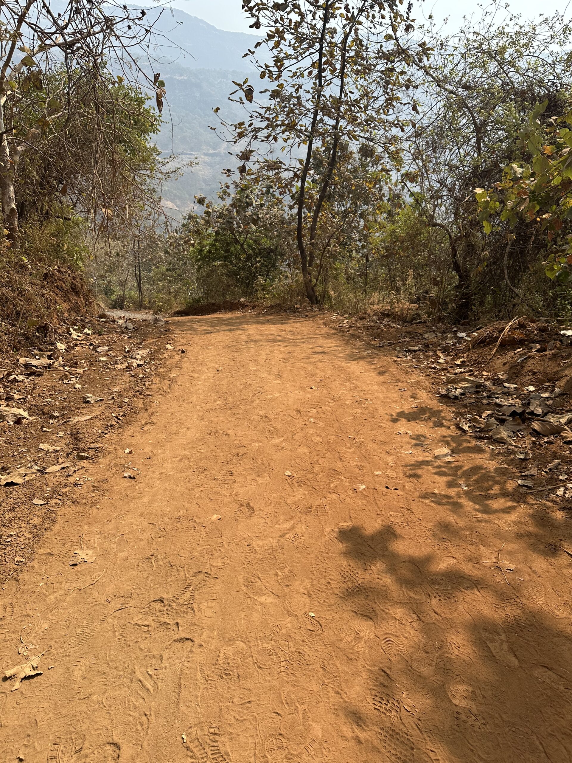 I began at 4 PM and walked with trepidation while maintaining a steady pace. I just didn’t want to crash out like last time in the first few hundred meters itself. A big JCB blocked my path just as I started on the incline. The local authorities were working on the road that would connect Thakurwadi to Prabalmachi. This had been a dream project for around 200 odd villagers of the Machi. It would end the isolation of the Machi with the rest of the villages located at the ground level. At the first pitstop – Aai Hotel, I bought some cucumbers and continued on my trail without taking a break.